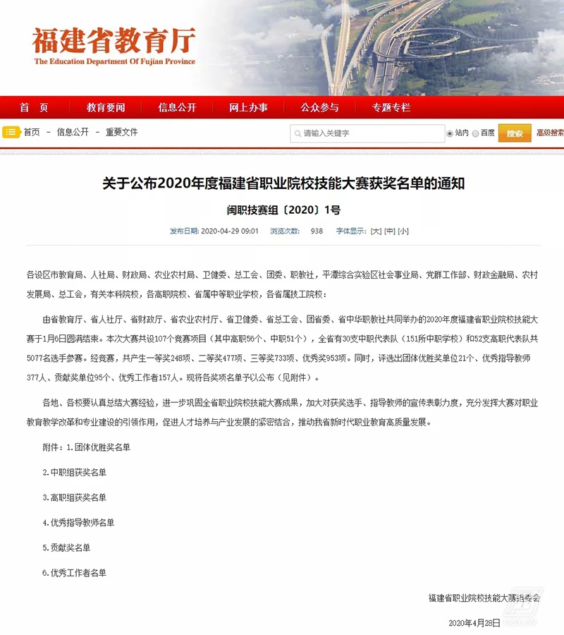 近日,福建省职业院校技能大赛组委会发布《华体会平台公布2020年度福建省职业院校技能大赛获奖名单的通知》。我校师生不负众望,再创佳绩!