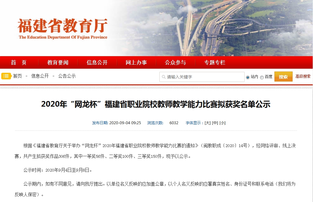 祝贺我校教师参加“网龙杯”2020年福建省职业院校教师教学能力比赛,荣获2个一等奖,2个二等奖,1个三等奖。