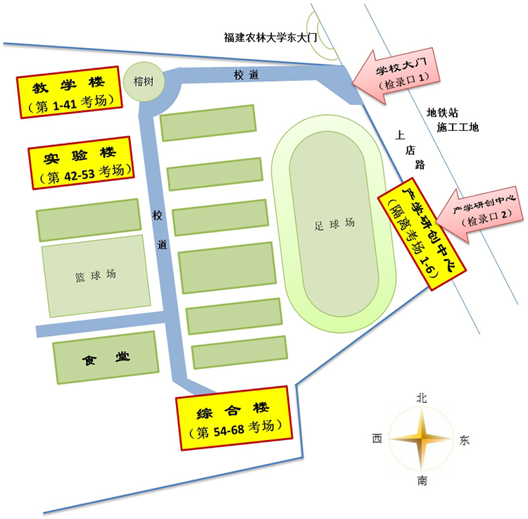| 考点 | 考场号 | 检录时间 | 检录口 | 检录口分布 |
