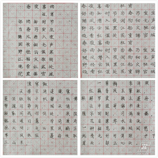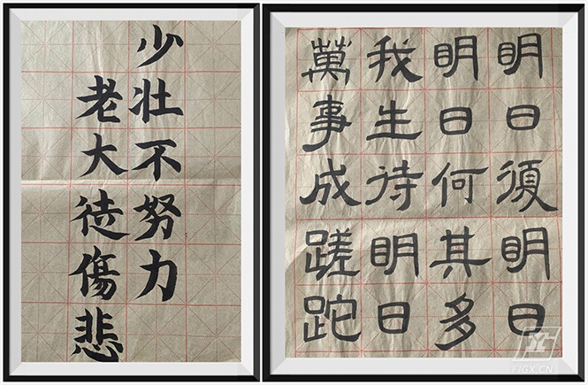此次比赛需同学们自备工具,硬笔书法现场随机抽取内容,软笔书法则以选手的座右铭、人生格言为内容,要求在规定时间内完成。比赛现场,同学们平稳沉静,聚精会神,他们或提笔挥就,一气呵成,字体龙飞凤舞,富有张力;或细致工整,一笔一画,字体隽秀美观,间架井然。横竖撇捺、起笔收笔,充分展现了选手们扎实的硬笔书法功底。