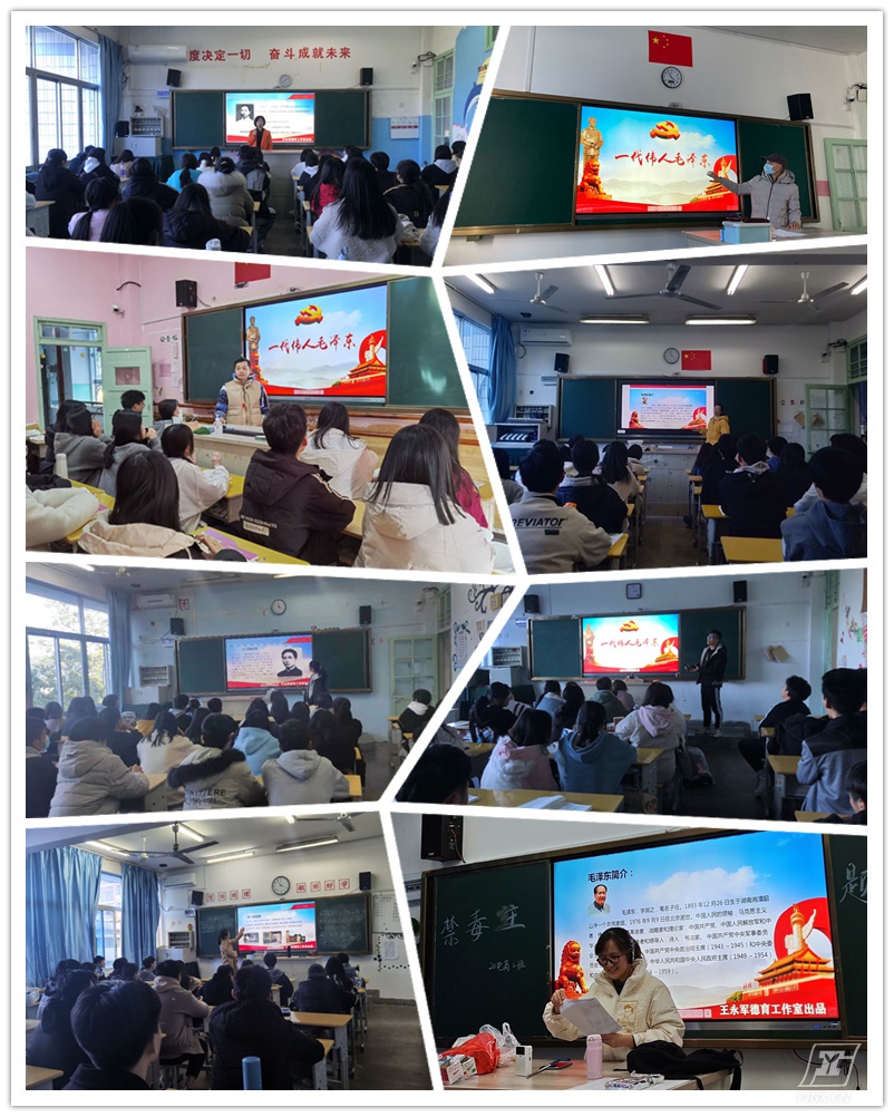 课上,班主任们给同学们讲述了毛泽东同志等老一辈革命家的故事。通过这些故事,同学们对我党优良的革命传统,对中国特色社会主义核心价值体系有了更深刻的理解和体会。“中国人站起来了”“为人民服务”“中国人民有志气,有能力,一定要在不远的将来赶上和超过世界先进水平”……,毛泽东同志的那一句句铿锵有力的话语既透射着时代伟人的担当,也让同学们心潮澎湃。