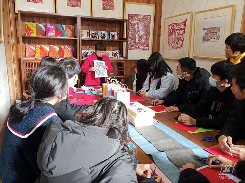 一把把黑亮的剪刀、一张张艳丽的红纸承载着劳动人民的智慧,一双双上下飞舞的巧手传承着中华优秀传统文化。2021年1月3日上午,我校经贸和电气专业教学部的20名学生来到三坊七巷郎官巷福建剪纸活动工作室参加剪纸活动课,省级传承人、省剪纸协会会长吴秋风老师亲自授课。