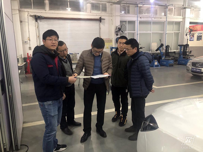 在杨尊东副校长、汽车专业教学部余茂生主任、AYEC项目组组长刘义及有关老师的陪同下,殷雪飞经理对照AYEC项目标准,对实训中心的教学环境、场地合规、机修场地、理论教室、教学设备、资料室等进行逐一比对和判定。