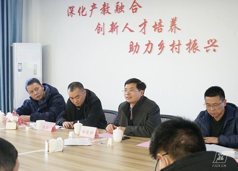 我校党委书记、校长林俊标同志首先对各方的到来表示热烈欢迎。他表示,我校信息技术类专业适时聚焦乡村振兴,以服务小微企业对人才需求为导向,从2017年起就与福建有伦农业科技有限公司开展产教融合项目,为助力乡村振兴培养返乡创业型中职人才。目前,该项目已历时四年,期间我校不断调整优化专业结构,深化人才培养改革,探索与福建有伦农业科技发展有限公司、三明市尤县联合镇政府、福州市蔬菜科学研究所、福州市农业科学研究所、福州市气象局、浙江大学全球创业研究中心的合作,创造性融合“校、企、政、研、创”五方优势资源,构建起产教融合、校企合作的利益共同体,为助力乡村振兴提供技能人才支撑。