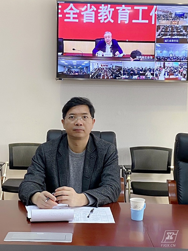 2021年2月23日上午,2021年全省教育工作会议在福州召开。根据省教育厅部署,我校设分会场,由校党委书记、校长林俊标同志主持,副校长余梅英、副校长杨尊东、副校长叶扬、党办主任李火明、教务科科长徐志英、办公室主任蔡杜娟、人事科科长林敏、学生科科长李旭东、总务科科长蓝长斌、招就办主任余茂生等同志出席会议。与会同志认真聆听了省领导对全省教育工作的重要批示以及林和平厅长工作报告。