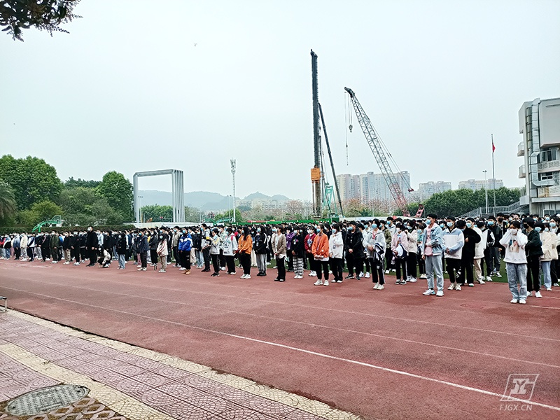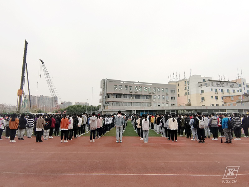 在庄严肃穆的氛围中,同学们目视着国旗缓缓升向空中。