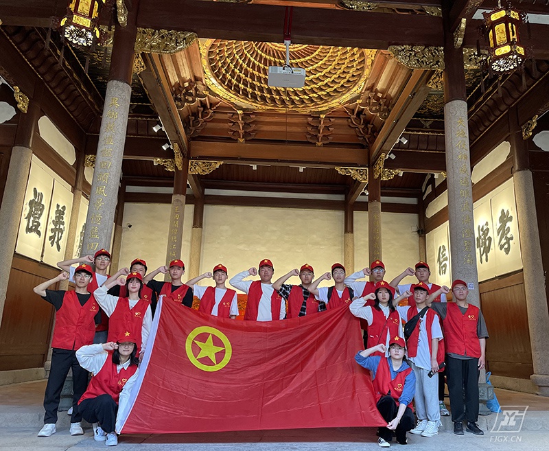 古田会馆是“清风福州”党史廉政文化示范点,设有会馆文化、家风家训、清风书场、道德讲坛四个展示部分,向往来游客展示独特的党史廉政文化,助力推动传统文化与党史廉政文化的传承和发展。在会馆中,全体师生重温入团誓词,认真观看了会馆内展出的每一幅图片和阅读了刻在石头上的每一段文字,详细了解党的百年征程,汲取革命的智慧与力量。