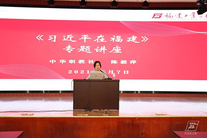 为深入贯彻学习习近平总书记在福建工作和考察时的重要讲话精神,2021年5月7日下午,我校邀请中华职教社陈毅萍副主任到校开设讲座,200余名师生参加,党委书记、校长林俊标主持。