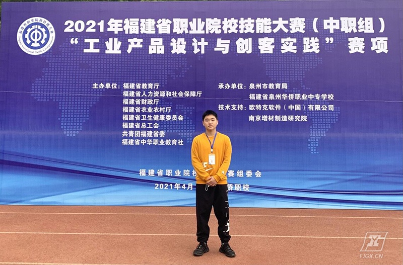 19数媒高职班赖烨磊同学荣获“工业产品设计与创客实践”赛项个人二等奖(全省排名第二名),指导老师为全政文老师。