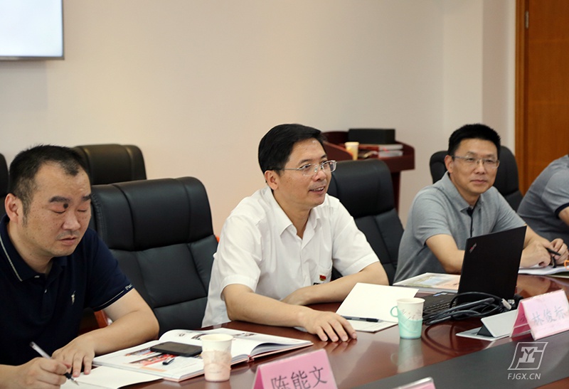 参观结束后,双方在综合楼9楼会议室召开座谈会。会上,林俊标校长向洪长春副厅长一行介绍了学校专业建设、实训室建设情况,同时,详细汇报了学校支持中小型企业发展,助力乡村振兴的工作成效。洪副厅长高度肯定了学校校企合作成果和专业建设成绩,并对学校加强与各有关部门的合作,为社会提供更多培训服务,输送更多技能型人才提供了宝贵的指导意见。