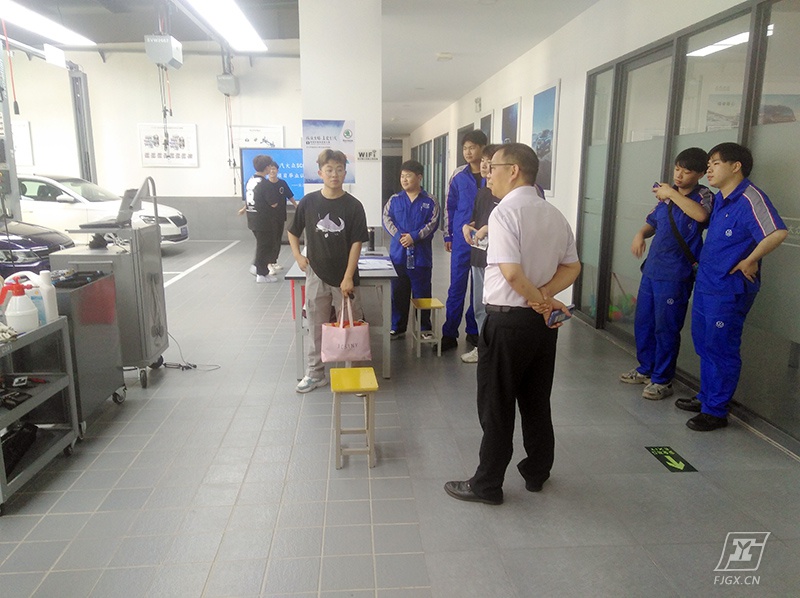 学生返校时,汽车专业教学部余茂生主任特地到现场,了解场地各工位项目设置、人员轮转安排等情况,并提出优化改进意见。期间,余主任还与学生攀谈,了解学生在经销商处实习工作情况和平日生活饮食起居。