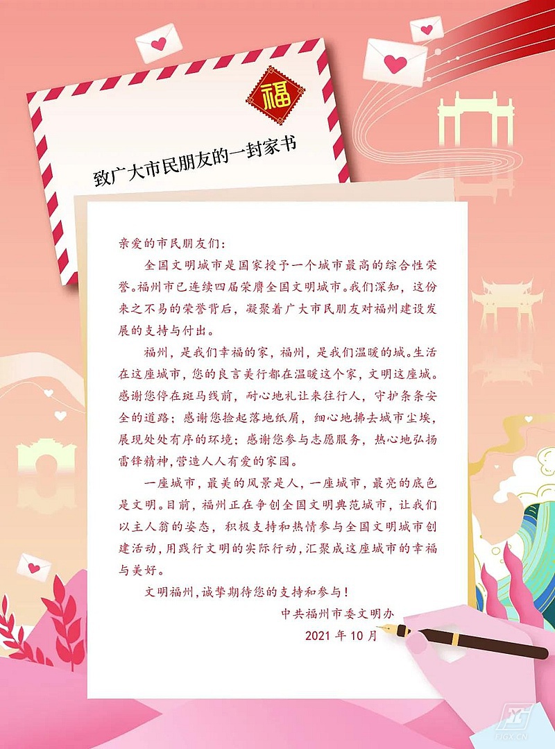文明创建,人人有责——福州市委文明办致广大市民的一份家书