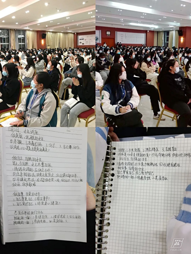 讲座上,陈舒敏老师从如何美丽优雅、如何自立自强、如何自尊自爱三个方面展开,强调女生的美丽不仅在外貌,更在内在。女生要学会独立自强,维护自己的尊严,爱护自己的身心健康。更重要的是,要保持理智,学会正确处理和异性的关系。台下的同学们听得十分投入,不少同学更是做起笔记,积极回答问题,现场气氛热烈。
