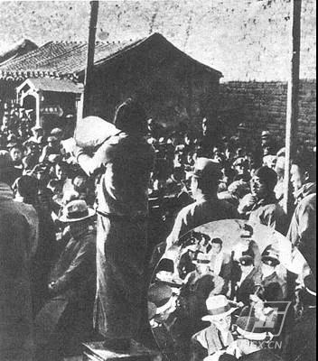 (清华大学女学生陆璀在北平西直门外进行抗日宣传)