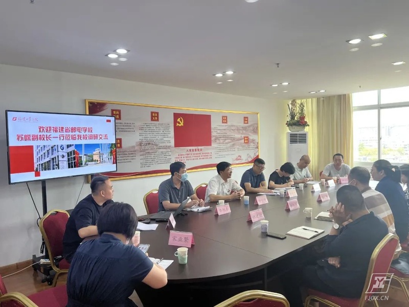 9月29日上午,福建省邮电学校苏嵘副校长一行莅临我校调研交流,林俊标校长、李新林副校长出席会议,教务科科长、校办公室主任、学生与保卫科科长以及各专业教学部学生管理副主任参与。