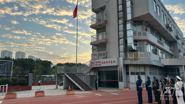 首先进行的是升旗仪式。蓝天映衬下,国旗在庄严的国歌中随风飘扬,同学们庄重肃立,表达着对国旗的敬意。