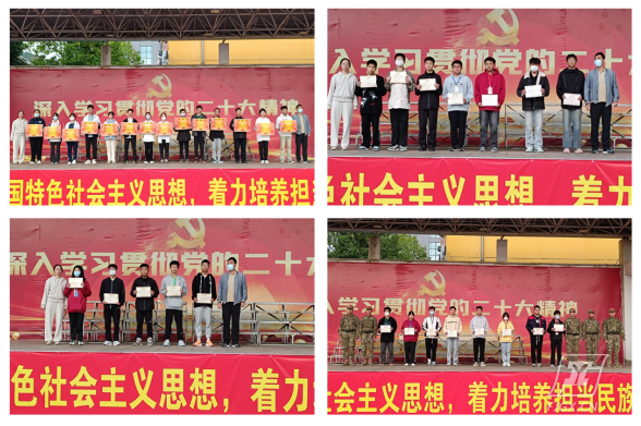 随后,进行颁奖仪式,表彰在大合唱比赛中获奖的班级和同学,以及“管理之星”“诚信之星”“进步之星”和荣获“优秀社长”称号的同学。