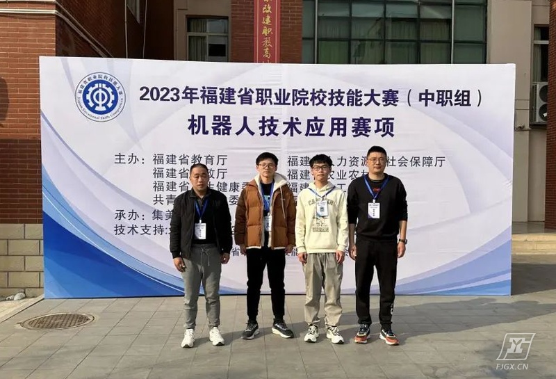 2023年3月4日至5日,由省教育厅、人社厅等八部门共同举办的2023年福建省职业院校技能大赛中职组“机器人技术应用”赛项在集美工业学校举行,全省共有26支代表队同台竞技。我校机械专业教学部2020级林炜晨和杨建增两位同学参赛,并在激烈的角逐中喜获一等奖(第二名),成功晋级国赛。