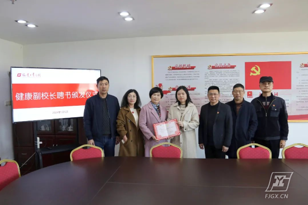 聘任仪式上,我校党委副书记、纪委书记余梅英对福州市卫生计生监督所监督三科四级主任科员肖婧的到来表示欢迎,并为她颁发健康副校长聘书。肖主任表示深感荣幸,责任重大,将继续发挥自己的专业所长,尽其所能配合学校做好健康安全工作,共同为师生生命健康保驾护航。