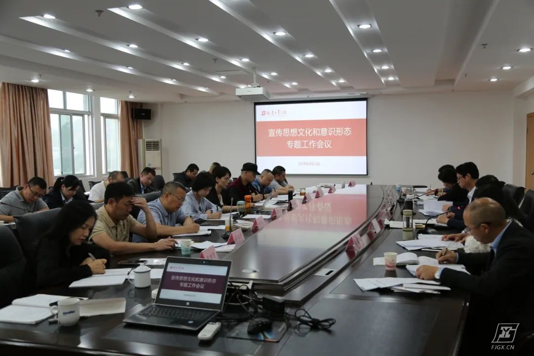 4月23日,我校在综合楼第三会议室召开宣传思想文化和意识形态专题工作会议,校党委委员、党支部书记、各科室负责人参加会议。