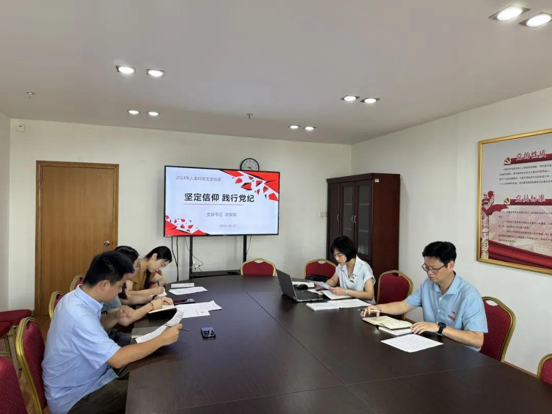 为深入开展党纪学习教育,进一步强化宣传引导、增强示范效应,引导支部全体党员学纪、知纪、明纪、守纪,2024年6月21日,我校人事科党支部开设了一堂题为“坚定信念 践行党纪”的党纪学习教育专题党课。
