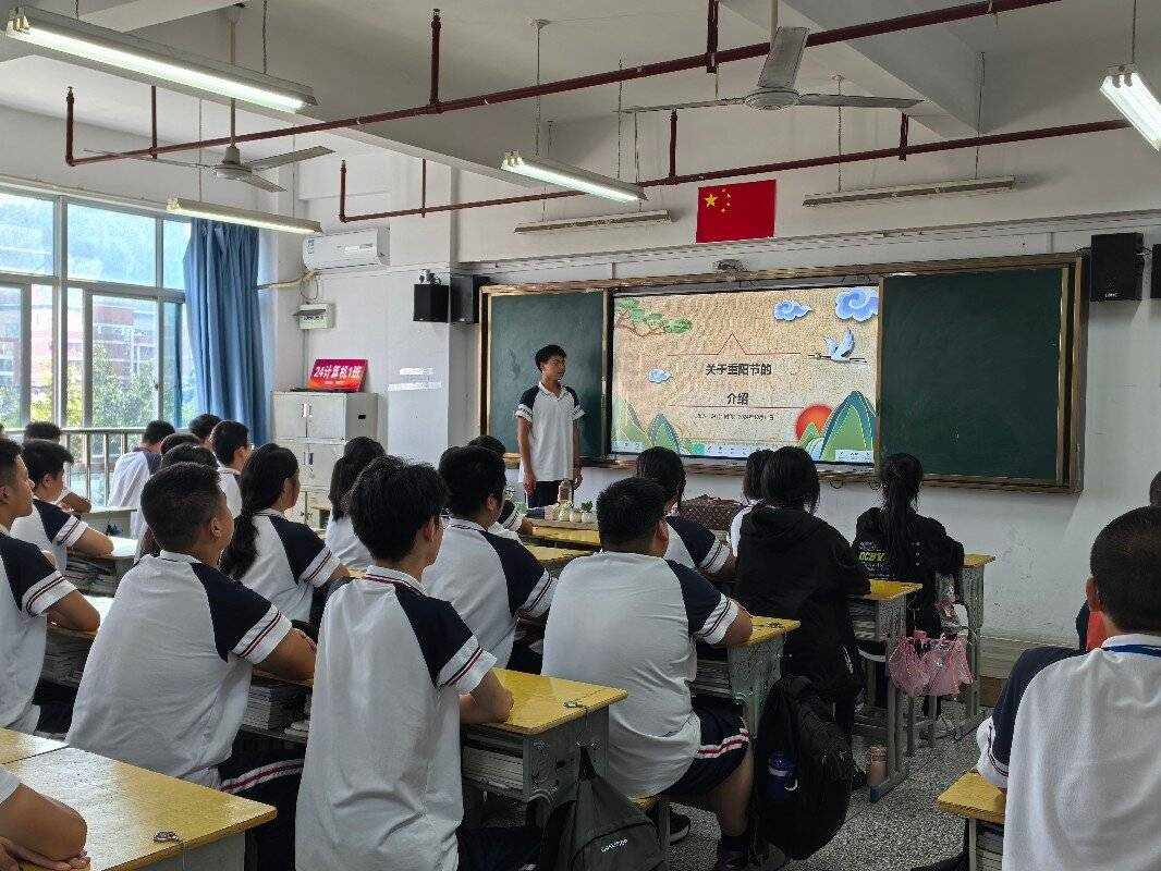 活动于文化韵味浓厚的氛围中启幕,同学们了解重阳节的渊源与风俗,共赏唐代诗人王维的《九月九日忆山东兄弟》。诗中“独在异乡为异客,每逢佳节倍思亲”的深情告白,如清泉般流淌在心间,让同学们深切体会到诗人对远方亲人的无尽思念。