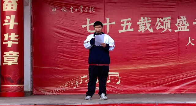 升旗仪式后,23模具班学生代表上台作国旗下讲话。他号召同学们,“少年当有凌云志,报效祖国正当时”,新时代的少年们何其有幸,站在中华民族发展的转折点上。面对崭新的未知与挑战,要昂首向前,发扬奋斗与团结的精神,勤学不辍,奋楫笃行,向幸福出发,向未来出发,向圆梦出发!