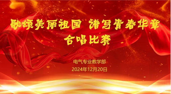 为丰富学生校园文化生活,展现学生的青春风采,推动校园精神文明建设,12月20日,我校电气专业教学部举办“歌颂美丽祖国 谱写青春华章”合唱比赛。