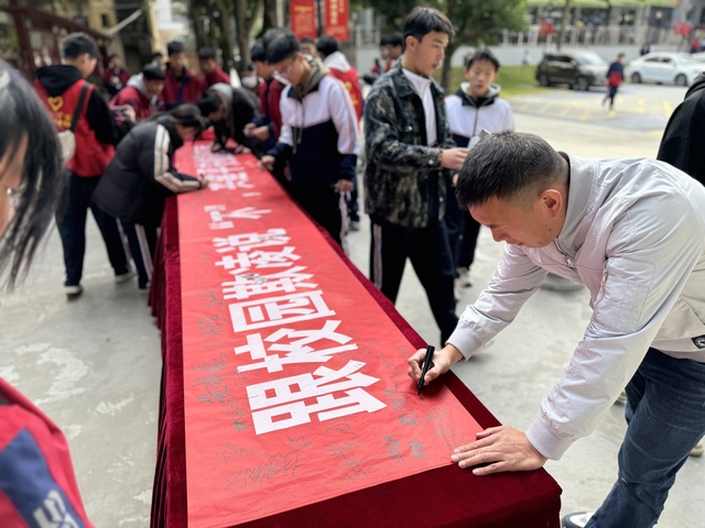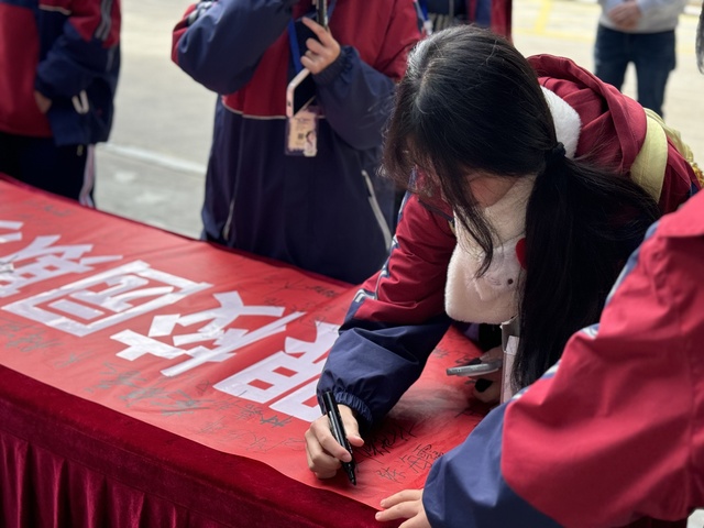 活动现场,师生们纷纷在写有“跟校园欺凌说‘不’,共建平安校园环境”的横幅上庄重地签下自己的名字。这一笔一划不仅是对抵制校园欺凌的承诺,更是对构建美好校园环境的责任担当。