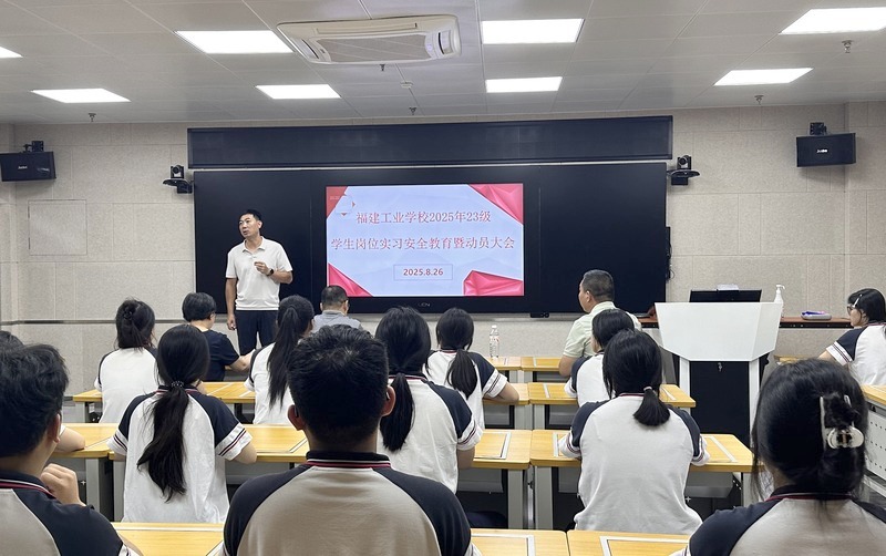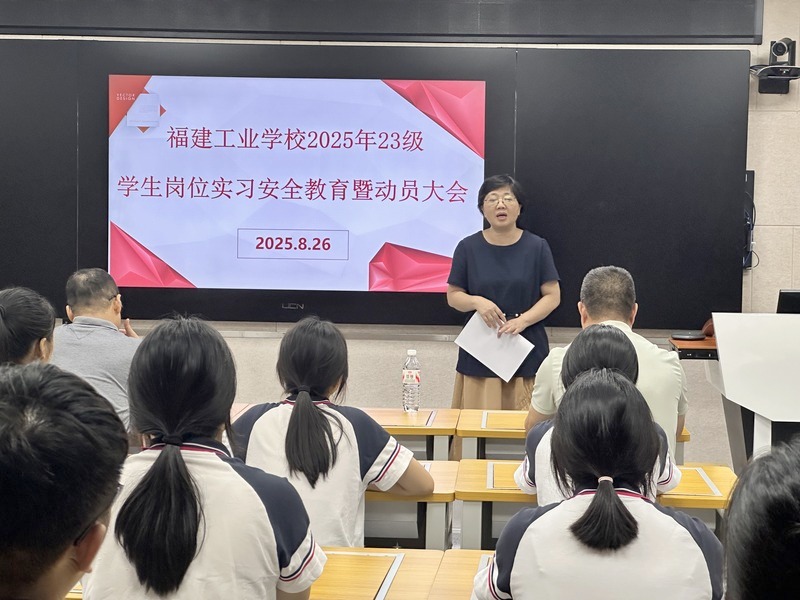 为切实做好2023级学生岗位实习工作,提升学生实习安全意识,保障实习活动顺利开展,2025年8月26日,我校采用线上线下相结合的方式,举办了2023级学生岗位实习安全教育暨动员大会。校长李新林、教务科科长徐志英、学生与保卫科科长李旭东、招就办副主任林智斌、2023级全体学生及相关教师参加会议。