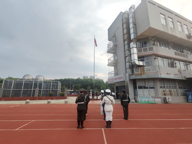 晨会在庄严的升旗仪式中拉开帷幕。五星红旗冉冉升起,全体师生神情肃穆,行注目礼。
