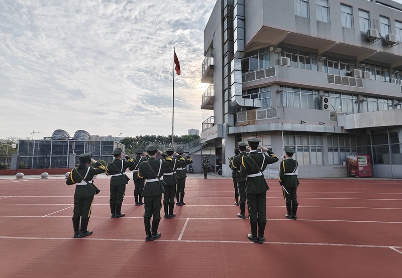 活动在庄严肃穆的升旗仪式中拉开帷幕。随着激昂的国歌奏响,五星红旗冉冉升起,全体师生庄严肃立,面向国旗行注目礼。