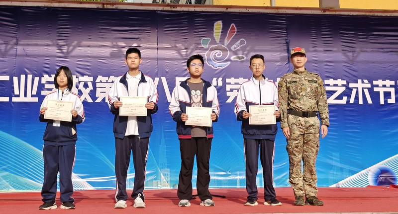 随后对获得“技能之星”称号的同学进行表彰,肯定他们在第十八届劳动技能艺术节期间的突出表现,号召全体同学向他们学习。
