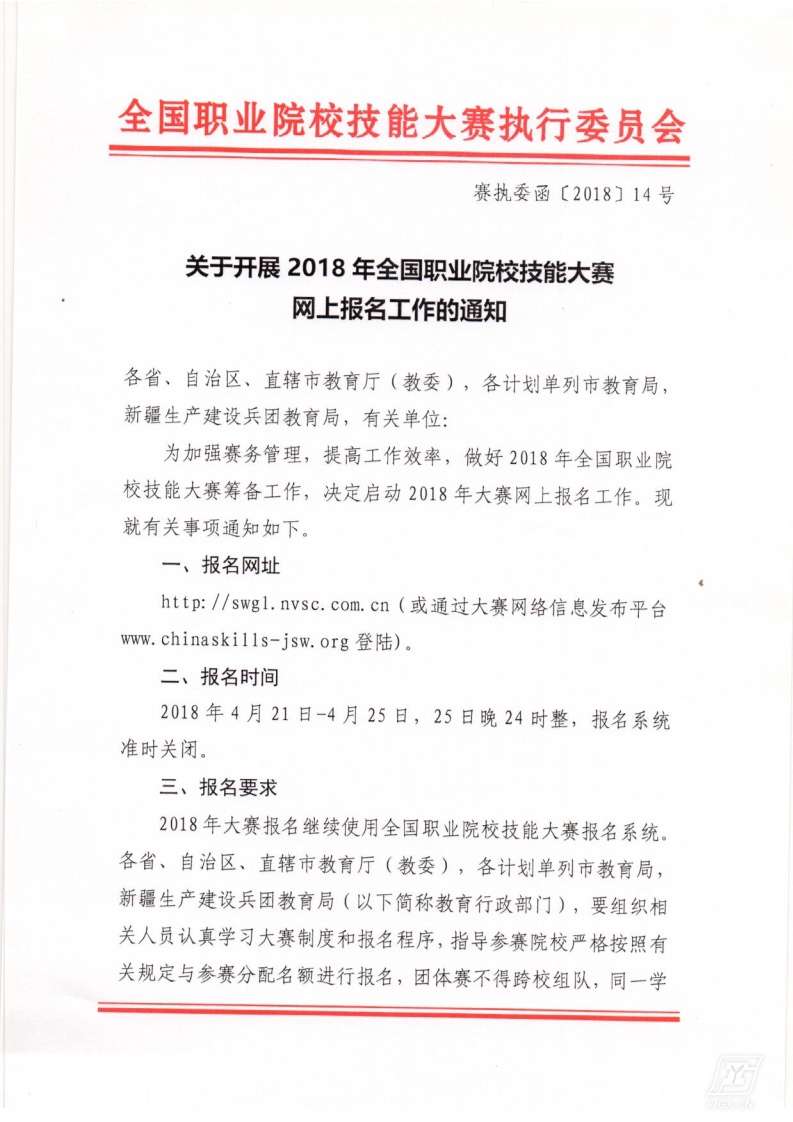 华体会平台开展2018年全国职业院校技能大赛网上报名工作的通知