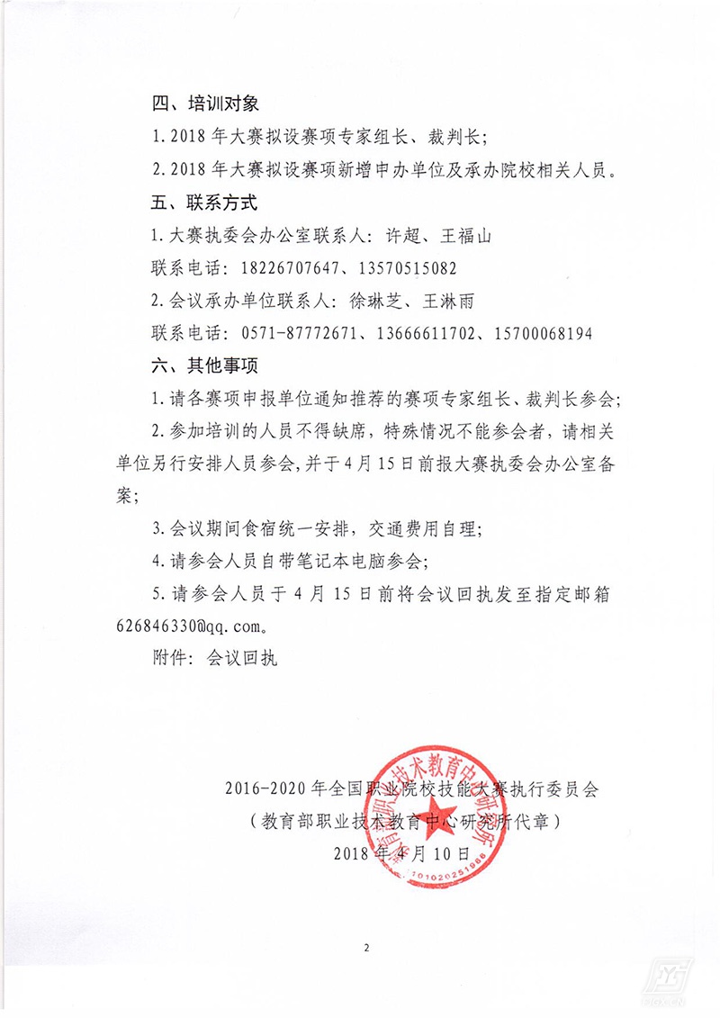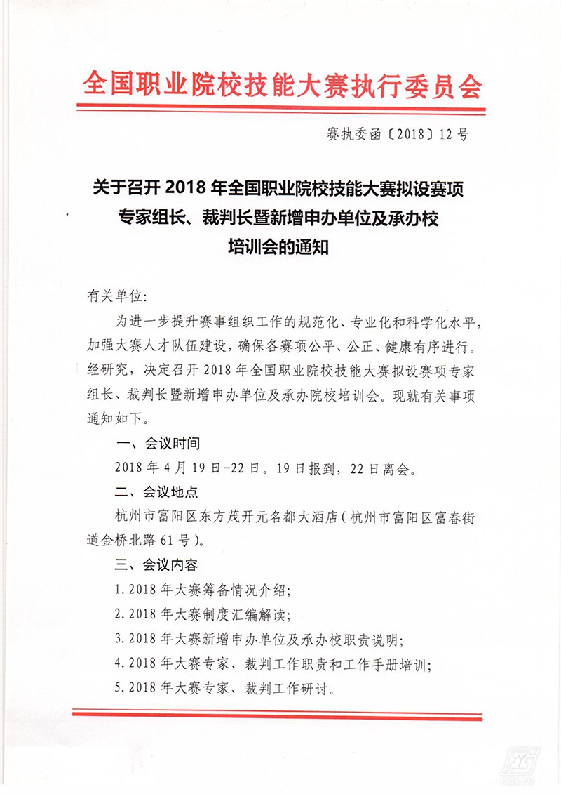 华体会平台召开2018年大赛拟设赛项专家组长、裁判长暨新增申办单位与承办校培训会的通知