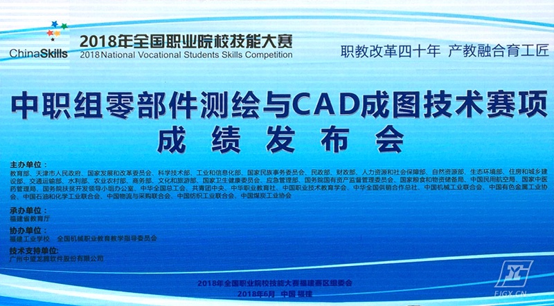 6月4日,2018年全国职业院校技能大赛——中职组零部件测绘与CAD成图技术赛项成绩发布会在福建省福州市顺利举行。