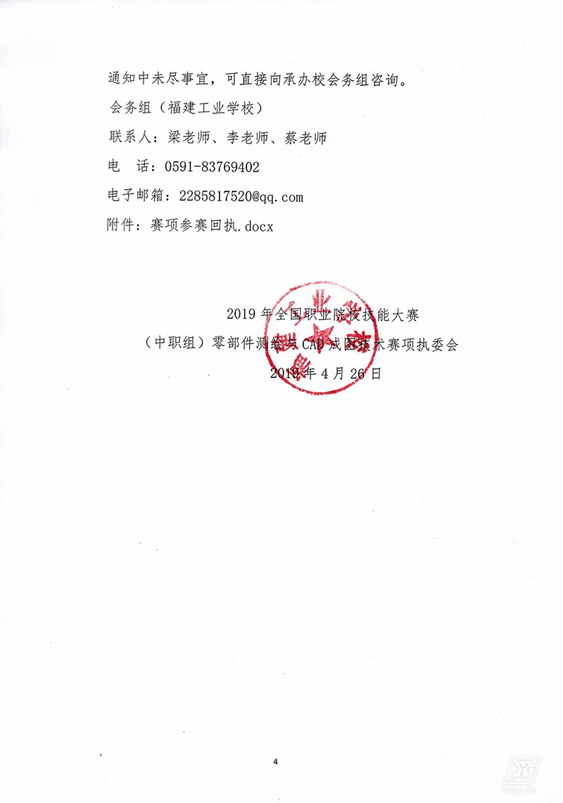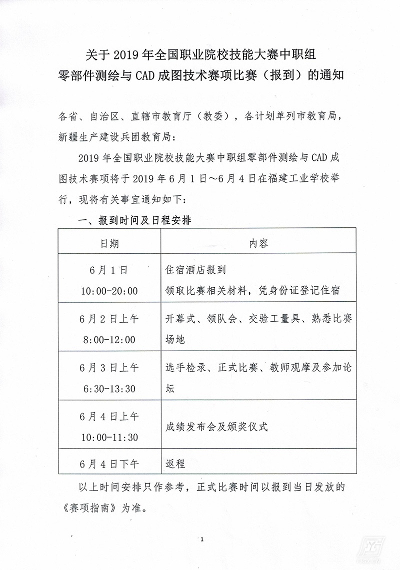 华体会平台2019年全国职业院校技能大赛中职组零部件测绘与CAD成图技术赛项比赛(报到)的通知