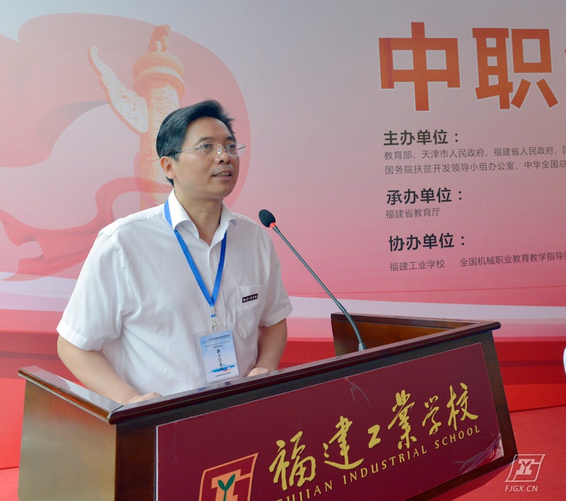 刘会勇调研员代表福建省教育厅、福建省分赛区执委会致辞。他简要介绍了福建职业教育和福建工业学校近年来所取得的不菲成绩,指出全国职业院校技能大赛是贯彻全国教育大会精神的重要举措,是落实《国家职业教育改革实施方案》的重要活动,是深化产教融合、校企合作的重要实践,是学生比拼技能、弘扬工匠精神的重要舞台。他表示福建省作为东道主,将严格遵守“精彩、专业、安全、廉洁”的办赛要求,加强风险防控,全力以赴提供高质量的服务,希望所有参赛学生努力赛出水平、赛出风格,以优异的成绩迎接中华人民共和国成立70周年。