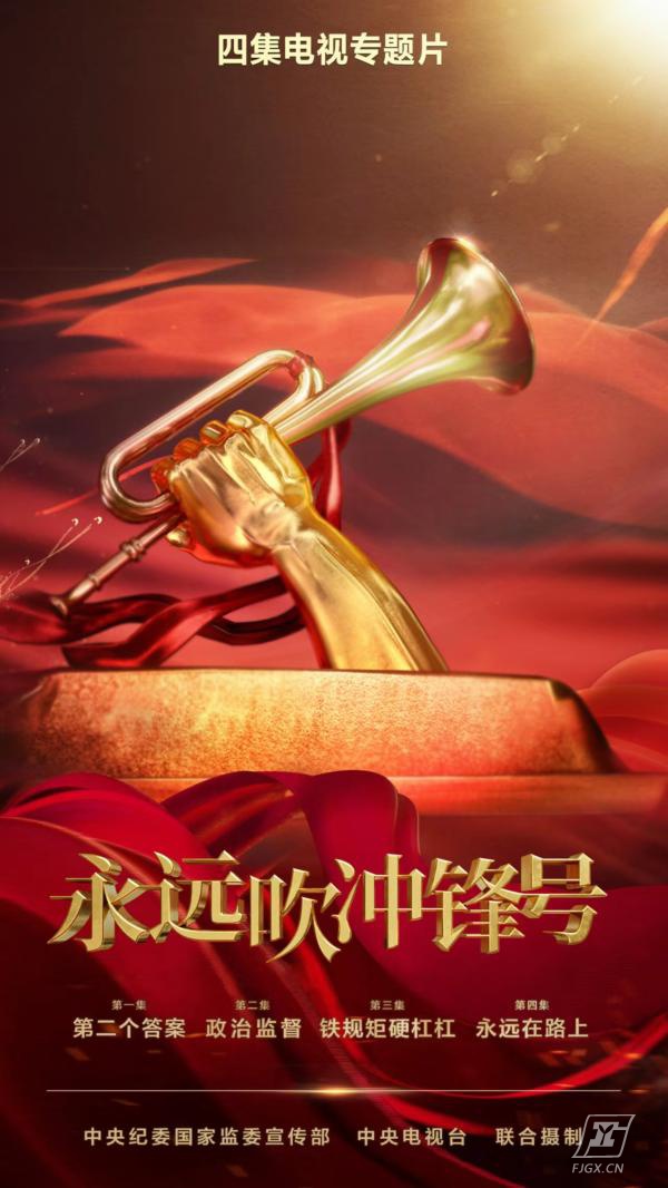 由中央纪委国家监委宣传部与中央广播电视总台联合摄制的四集电视专题片《永远吹冲锋号》,将于1月7日至10日在中央电视台综合频道晚8点档播出。专题片共分四集,分别为《第二个答案》、《政治监督》、《铁规矩 硬杠杠》、《永远在路上》,共选取12个案例,采访纪检监察干部、有关审查调查对象及涉案人员、干部群众100多人,生动讲述新的历史条件下,中国共产党持之以恒推进全面从严治党,以党的自我革命引领社会革命的故事。请及时关注收看。
